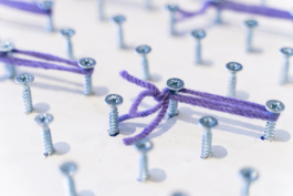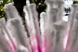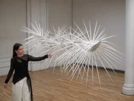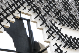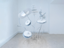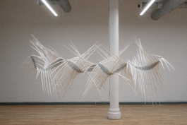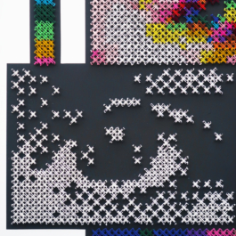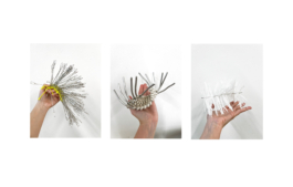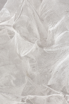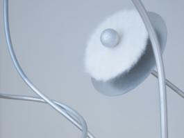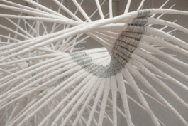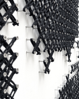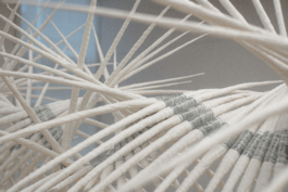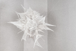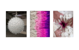 This installation pushes knitted fabric to its limits, transforming softness into sharp, self-supporting form with no hidden structure or hard materials. Each spiky edge is tensioned for surprising rigidity, creating an experience that feels both weightless and dense, as if it’s expanding and contracting at once. The threads connecting it to the space add tension, as if the piece is barely contained. Keeping it all white directs the focus to its movement and form—capturing a frozen, explosive moment of energy, like an intense, turbulent memory. — Created during the first semester of MFA Textiles in Parsons School of Design with the support of Calouste Gulbenkian Foundation. | Materials Wool Location Year |