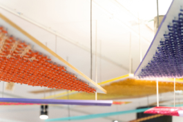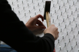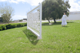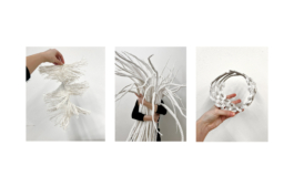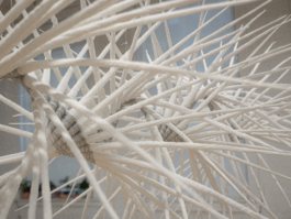 Soft Spears explores the harmony between opposing forces, challenging false dichotomies. The installation consists of 100 soft white spears, crafted from repurposed fabric—spun, coiled, and treated with biomaterial. At once aggressive and peaceful, these forms occupy a space between weapon and textile, hardness and softness. Woven on a three-meter-long improvised loom, the rigid textile elements serve as warp threads, crossed by a thin, flexible metal wire weft. The process becomes a physical and performative act—a negotiation of tension and release. Once woven, the piece is shaped into a spiral, visually mirroring the search for balance: ups and downs, tangles and untangles. Though visually intense, when suspended in mid-air, the piece feels weightless—inviting viewers to move through it and reflect on the interplay of rigidity and fluidity, stillness and action, tradition and innovation. Soft Spears embodies duality—celebrating coexistence as a space for justice.