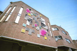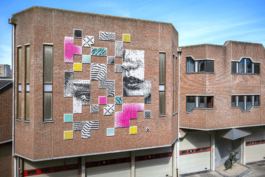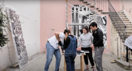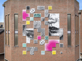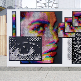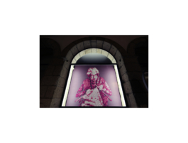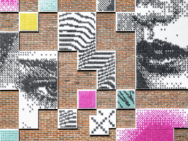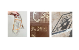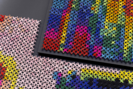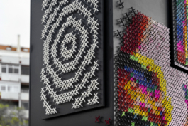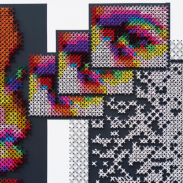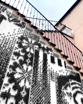 // Archive // I created this installation for Festival Batom at Casa Bissaia Barreto in Coimbra, Portugal. Festival Batom is a project that celebrates and brings together inspiring women from all artistic fields. //Archive// is designed to resemble a personal reference library, showcasing what inspires me as a woman and an artist. The composition features an array of images, ranging from traditional floral patterns to coding language, incorporating fluid graphics and female references. The graphics are thoughtfully arranged in a way that creates a mood board effect, with each picture overlapping the other to create an illusion of layers. The installation's outline follows the lines of the stairs, resulting in a site-specific artwork that blends seamlessly with the building. For this intervention, I opted for the large-scale cross-stitch technique I invented. Since it's an outdoor permanent installation, I opted for all-black Arraiolos wool. Black is the color with the longest longevity and is least likely to fade in sunlight. Arraiolos wool is composed of 100% natural fibers and is super thick and rough; it can support a lot of weight and still keep its shape for a very long time, hence the reason why the Portuguese use it for their best-known Arraiolos tapestries.