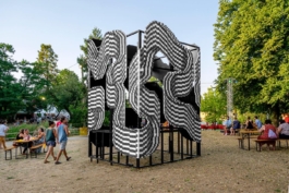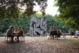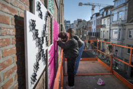 Nova Onda In 2022, Rio Loco, a festival that happens every year in Toulouse, chose Portugal and Portuguese Culture as that year’s focus. It was an enormous honor to be in Toulouse representing my country, especially having the opportunity to think and design such an enormous installation. As a Portuguese artist, the festival's theme, "Nova Onda" felt close to me. As soon as I started sketching, the wave was a constant element in my compositions, either as a motif, background, or detail. As the drawing progressed, I noticed that the wave could symbolize several key concepts. There's an undeniable link between Portuguese identity and the ocean. The big shoreline with the Atlantic is a big part of our history but of our daily lives as well. The peaceful yet violent nature of the sea is an inspiration. "Saudade" is the nostalgic feeling of longing for something that has passed, but newer generations are reinventing and rediscovering our history and traditions through it. The back and forth, the dynamism and the turmoil growing in Portugal are represented in this installation by its movement, the waves' motion, and the ties' rising. | Promoter Materials Location |