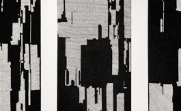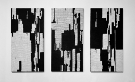 Timeline "Timeline" is a work that explores the concept of time, especially the idea of a complex and extensive line with a beginning and end. Like any timeline, I tried to find and embroider different rhythms, densities and weights. The triptych evokes the idea of time and chapters, directly inspired by the three fundamental phases of all stories: beginning, middle and end. | Materials Size Year |